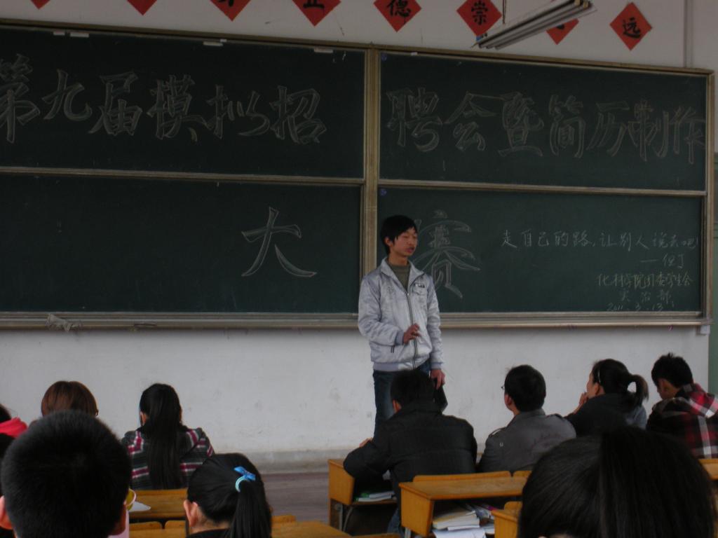 2011年3月13日下午,维多利亚3308老品牌第九届模拟招聘会暨简历招聘会设计大赛在生化楼2024教室顺利举办。