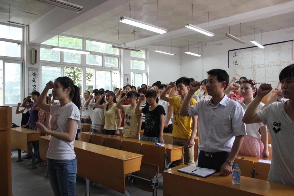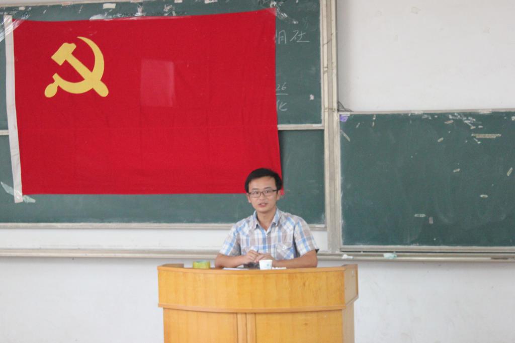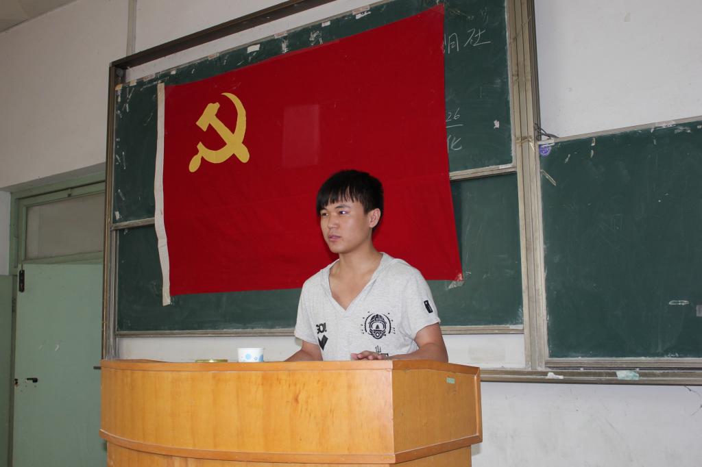 张园园首先介绍了本学期党员发展的概况,对在座新发展党员之前取得的成绩给予肯定和鼓励。接着,09级毕业班党员代表王国良和10级本科支部新发展党员代表刘坤分别发言。王国良提出入党要保持“三心”,即“真心、恒心、良心”,倡导在座的党员同学要模范遵守校规校纪,以实际行动践行优秀党员的标准。刘坤代表学院本批发展的43名同学,向党组织的关爱和信任表示感谢,同时坚定了在以后的学习、工作、生活中更严格要求自己的决心。入党宣誓由10化学支部组织委员郑丽娟领誓,全体党员面对党旗,庄严肃立,举起右拳,逐字逐句跟读誓词,现场氛围激动而振奋。宣誓结束,张园园提醒新老党员要经常思考三个问题,即:实习时,考研复习、就业招聘中,考研录取、工作落实后,我们的党员同学做了什么?该做什么?能做什么?