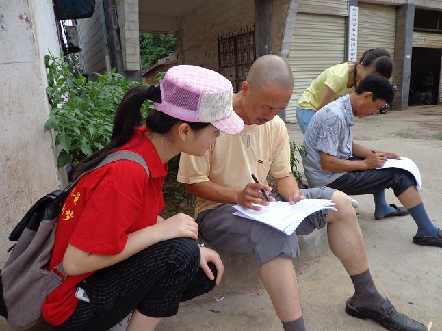 早上八点,队员们兵分四路,在社区逐家进行了问卷调查,居民们积极配合。调查期间,居民们和队员们交流了一些当地的环境污染情况,表达了自己对改善环境的意见和期望。整个活动过程中,队员们积极克服了天气炎热等困难完成了100份问卷调查的工作,并于当天下午进行了问卷调查相关结果的统计和分析。