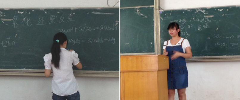 宁国中学实习小组成员积极配合,钻研教材、努力训练。按照学院的安排和要求,在研究生指导小组带领下,实习小组从微格训练开始后的每一周至少完成一次试讲训练,板书教学训练和多媒体教学训练双管齐下,小组里的每一位成员认真对待每次上台讲课训练,虚心接受批评和建议。在9月份校内微格训练阶段,小组成员完成了《物质分类》、《离子反应》、《氧化还原反应》等高中化学典型课题的教学设计,同时备有多媒体教学课件。通过大家的共同努力,所有成员均取得了显著的进步,为进入宁国中学实习做好了充分的准备。