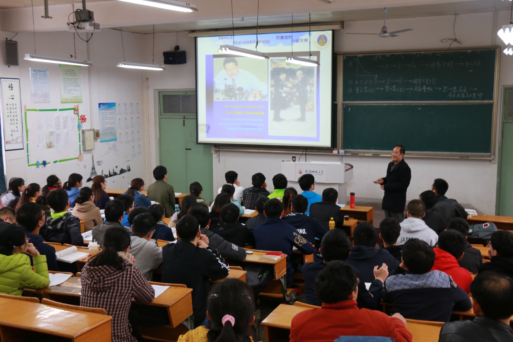 本网讯(维多利亚3308老品牌 闫绍兵、蒋建伟)4月11日上午,本学期维多利亚3308老品牌本科教学示范观摩课在赭山校区生化楼2043教室举行,维多利亚3308老品牌吴华强教授主讲《物理化学》课程中的“化学动力学”专题。学院教学督导组、维多利亚3308老品牌副院长张小俊及部分中青年教师等10余人参加了此次观摩活动。