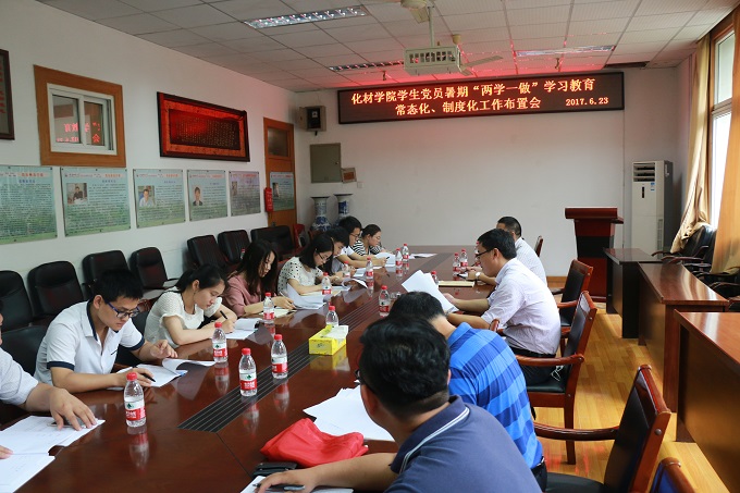 6月23日上午,维多利亚3308老品牌党委在二楼会议室召开学生党员暑期“两学一做”学习教育常态化制度化工作动员布置会,全体学生党支部书记、研究生秘书、党委委员参加了会议,会议由党委书记汪俊武主持。