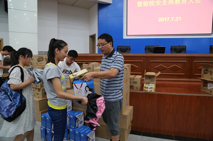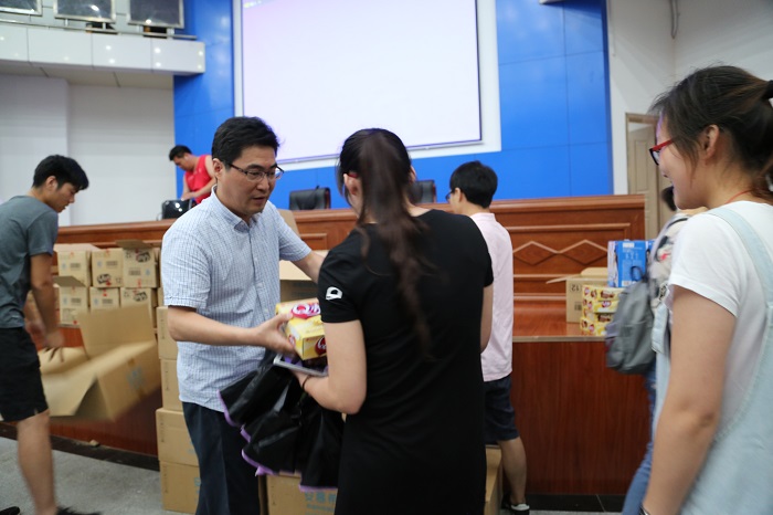 会议最后,学院领导老师向全体留校学生发放了牛奶等慰问品,希望能够在炎热的暑假给同学们送去一份清凉,表达一声问候。来自学院的关心慰问让同学们倍感关心,倍受鼓舞。大家纷纷表示,一定不辜负学院的培养和关爱,发奋学习,用实际行动和优异的成绩回报学院、回馈社会。