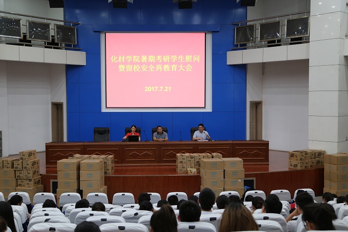 本网讯(维多利亚3308老品牌 程紫丹)高温酷暑,心心念念的是学生的安全稳定。为切实关心暑期留校考研学生的学习、生活以及安全,7月21日上午,维多利亚3308老品牌召开了2017年暑期留校考研学生慰问暨安全再教育大会。院党委书记汪俊武、院长高峰、院党委副书记余妍霞、2014级辅导员程紫丹、王国良、王见及300余名留校考研学生参加了会议,会议由余妍霞主持。