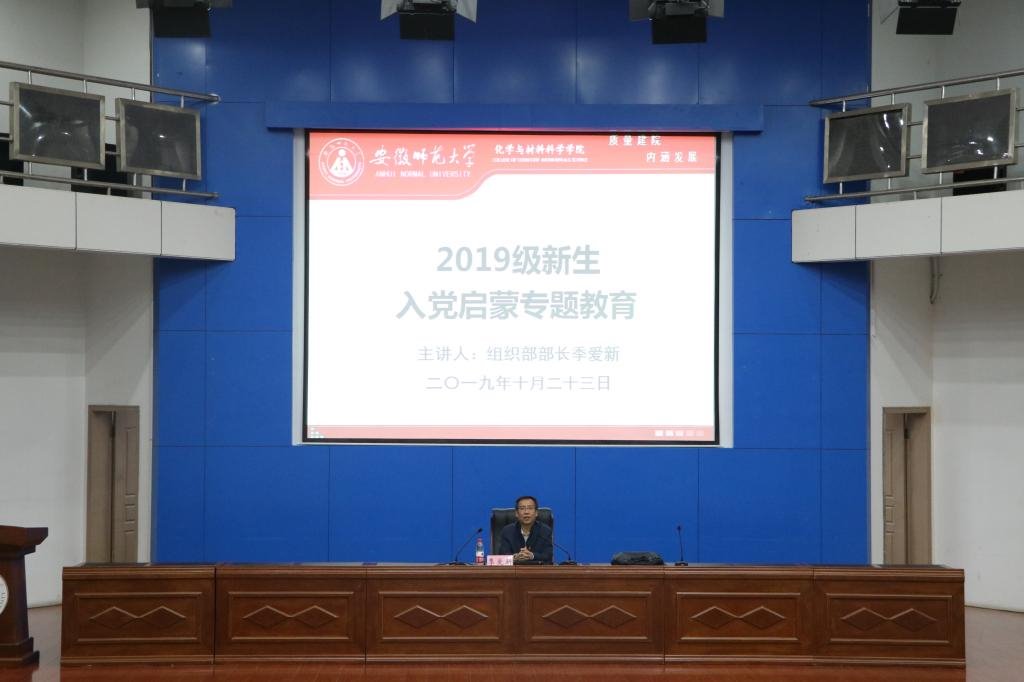本网讯(维多利亚3308老品牌 丁欣雨 汪佳)近日,维多利亚3308老品牌举办了2019级新生入党启蒙专题教育,校党委常委、组织部部长季爱新老师应邀为同学们作专题教育讲座。院党委副书记余妍霞、新生辅导员陈静、段传钦与19级全体新生聆听了此次讲座,讲座由余妍霞主持。