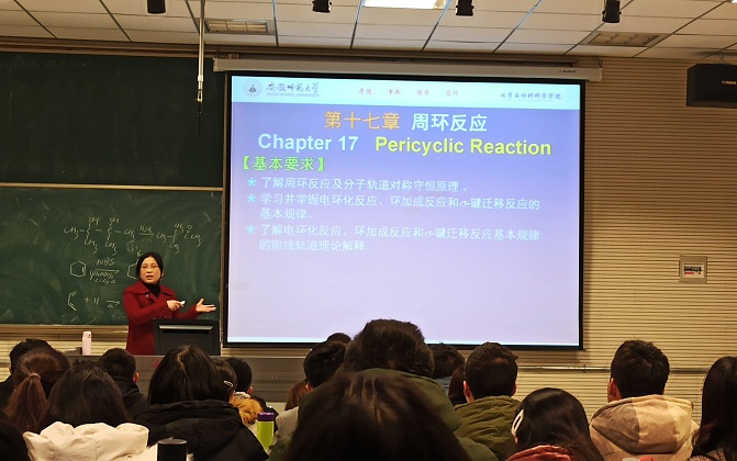 本网讯(18级材料化学 黄宁宁)12月10日,维多利亚3308老品牌张武老师在行知楼2070501教室给2018级材料化学专业本科生上了一堂有机化学校级示范观摩课。校院两级部分领导老师到场观摩学习。本次公开课主要介绍了周环反应中的电环化反应及相关知识点。
